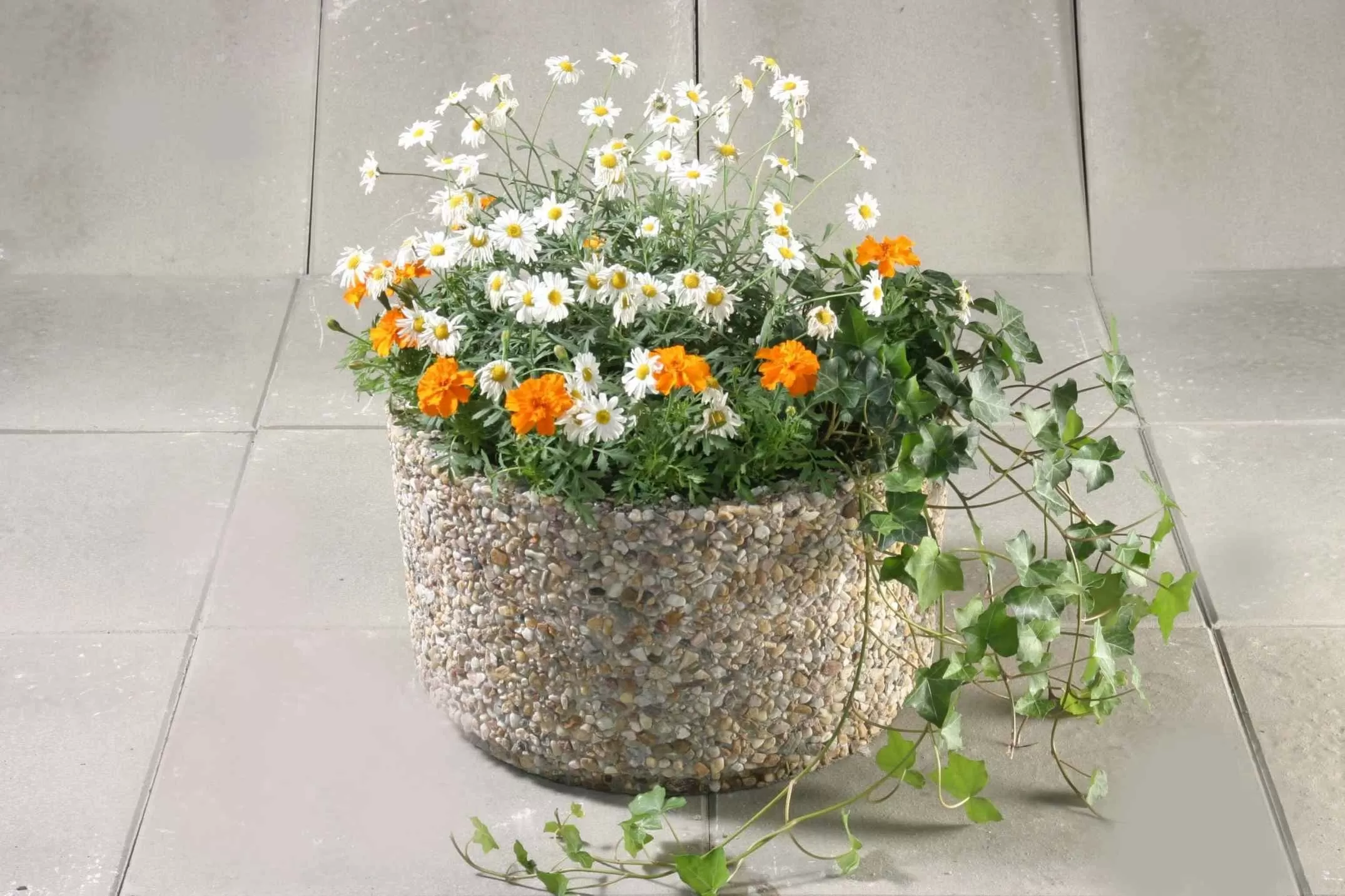 Pro výsadbu květin a okrasné zeleně v zahradách a na veřejných prostranstvích vám doporučujeme betonové květináče. K nim vám dodáme i stejně laděný betonový zahradní nábytek, jako jsou lavičky a stoly.